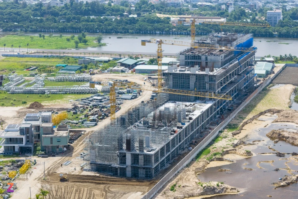 Đây là dự án đầu tiên của Sun Group tại TP.HCM mới. Chủ đầu tư đang đẩy nhanh tiến độ thi công với sự tham gia của hàng trăm máy móc và công nhân hoạt động liên tục trên công trường.