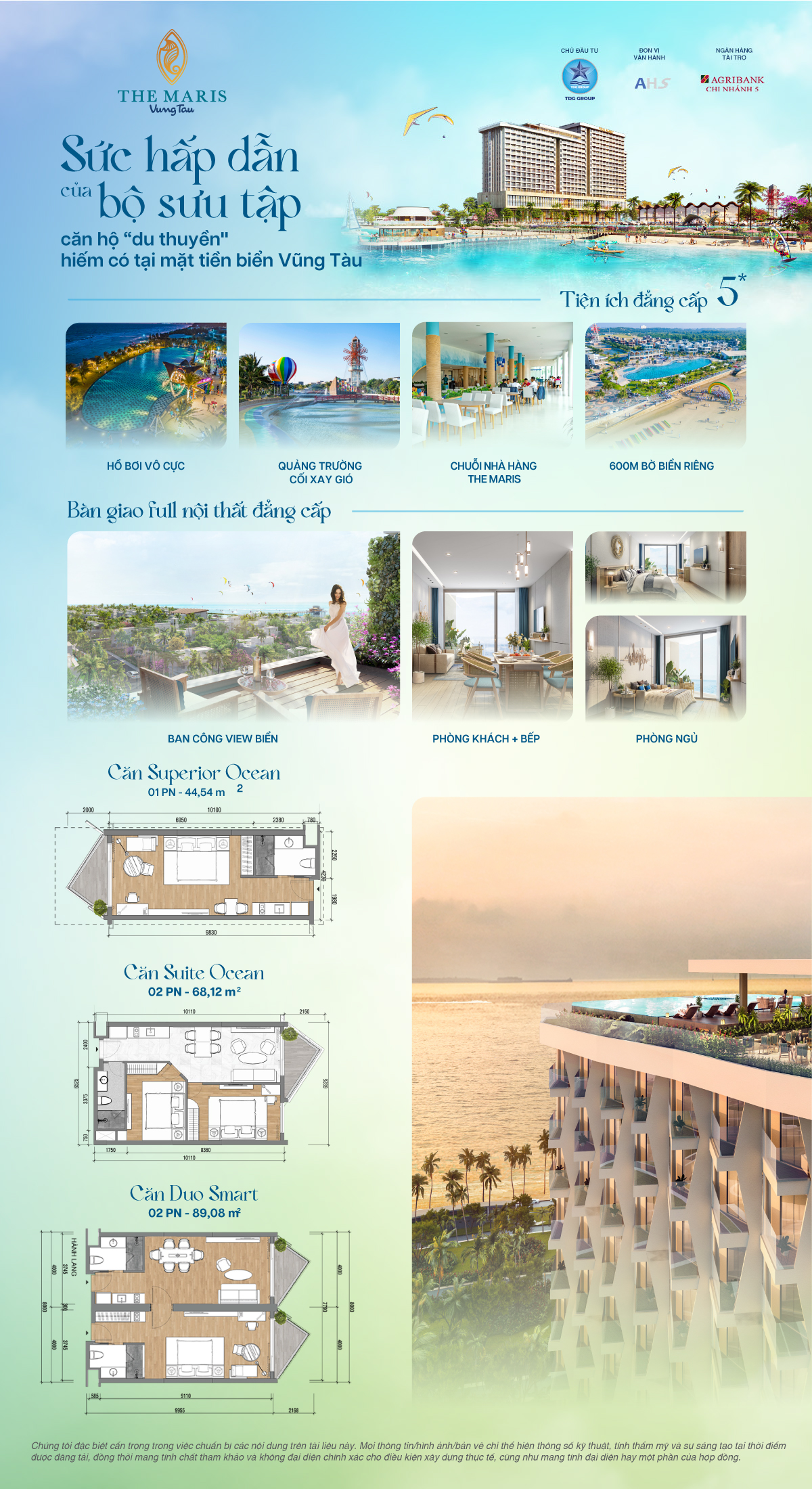 - Đặc điểm nổi bật: Căn hộ nghỉ dưỡng trong quần thể resort biển quy mô lớn Thiết kế tối ưu tầm nhìn biển Không gian sống xanh, mật độ xây dựng thấp Phù hợp nghỉ dưỡng và đầu tư khai thác cho thuê