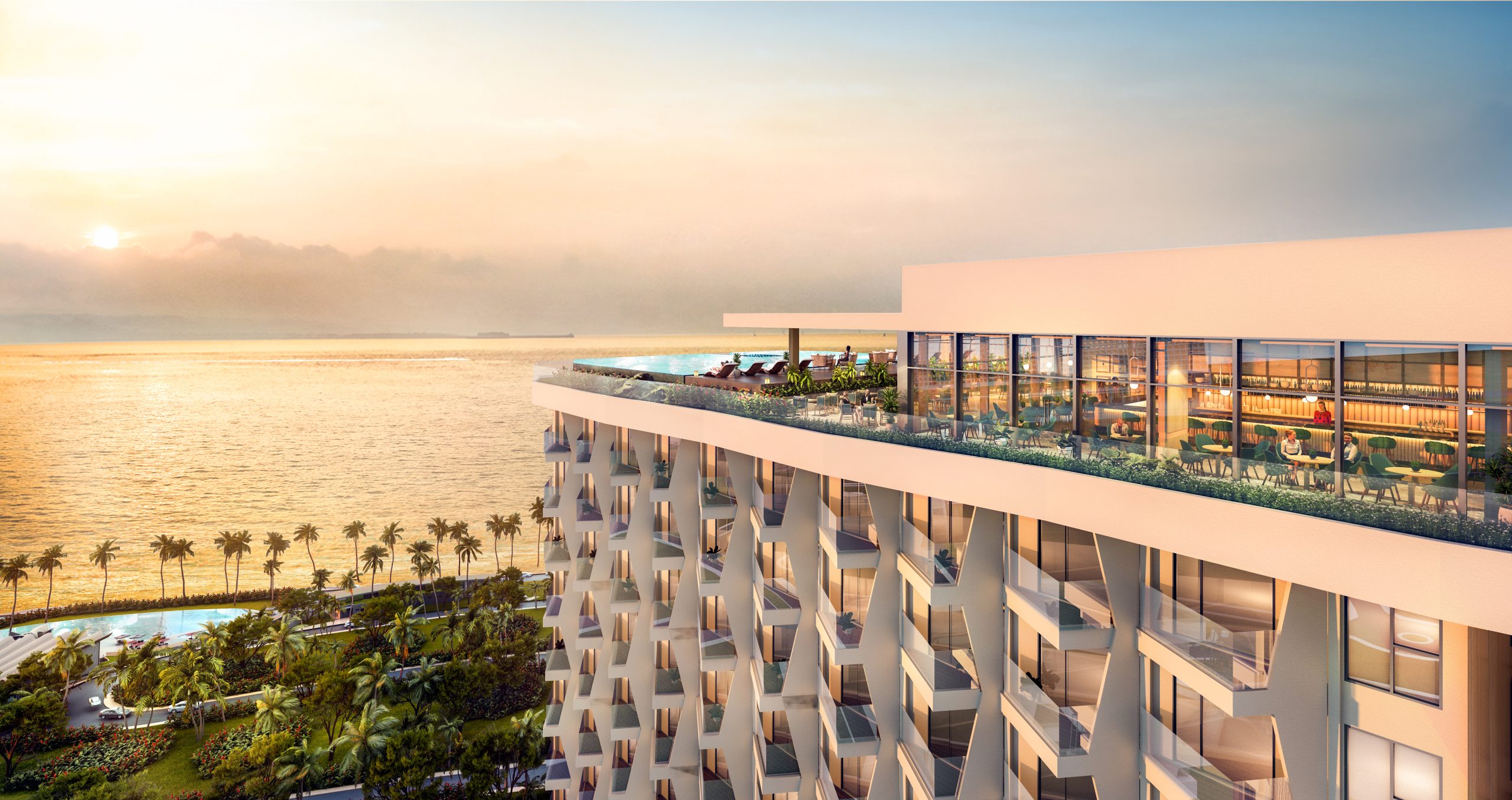 Không gian beach club sang trọng với nhà hàng, lounge và khu thư giãn, mang đến trải nghiệm nghỉ dưỡng chuẩn resort ngay trong khu đô thị.
